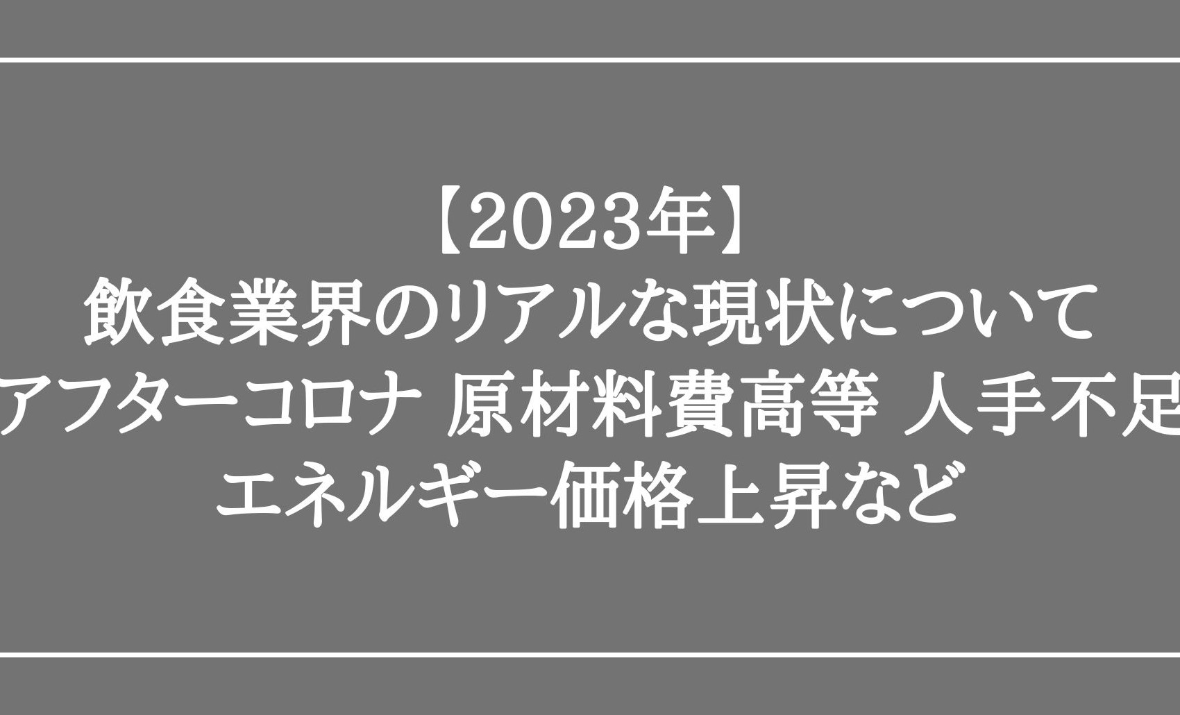 【2023年】飲食業界のリアルな現状について アフターコロナ 原材料費高等 人手不足 エネルギー価格上昇など