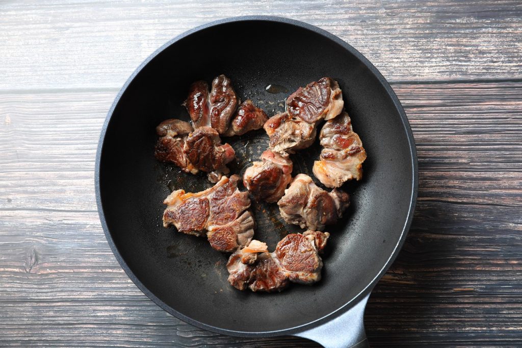 ①牛スネ肉を焼いていく。しっかり目に焼いてよい。