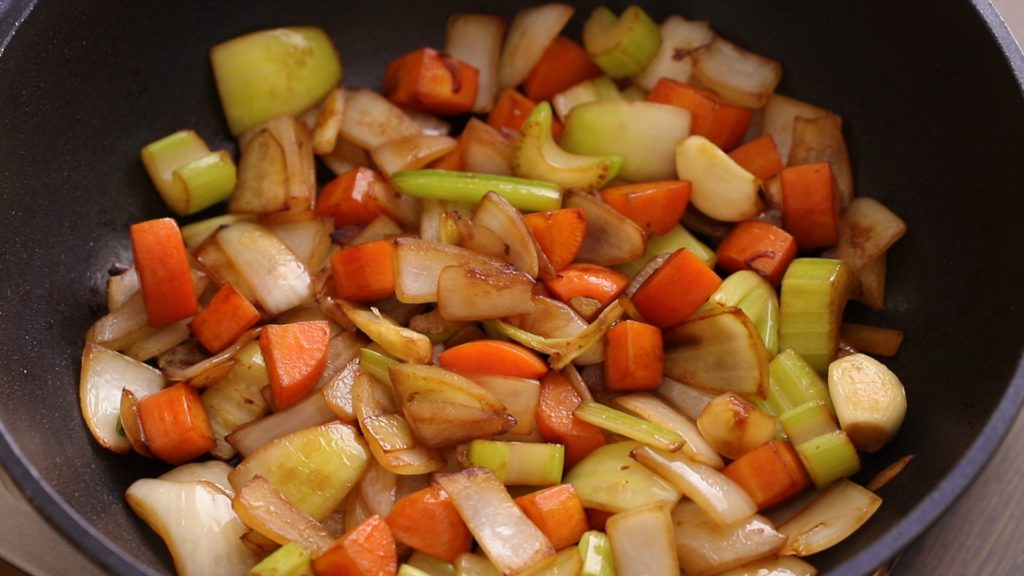 - 1.3.0.2 ②野菜類を炒める。写真くらいの色まで炒める。