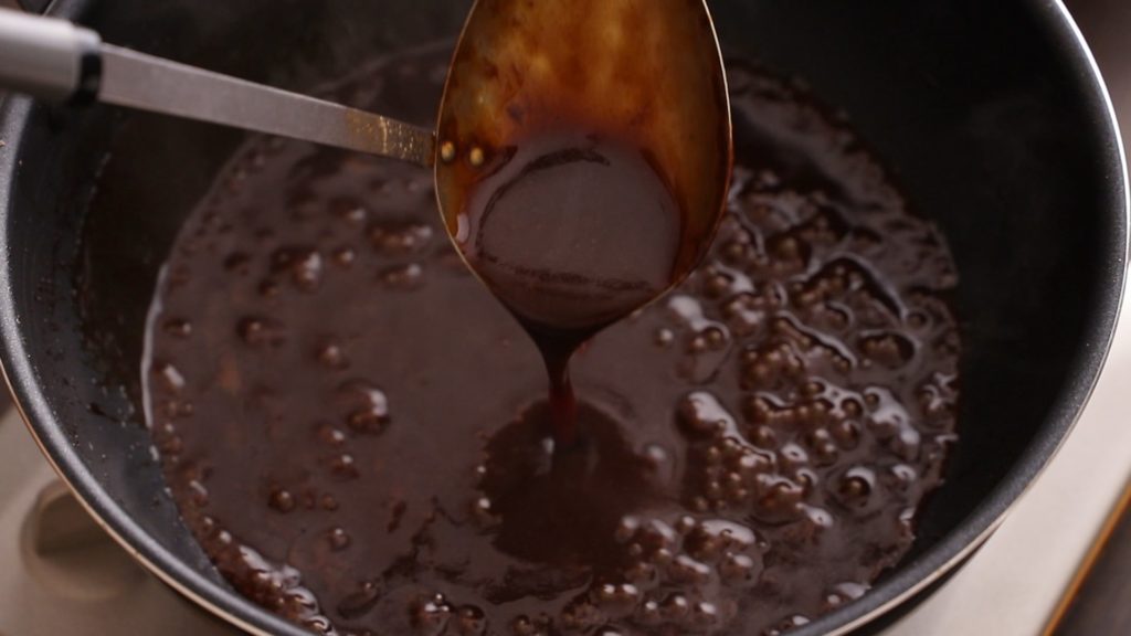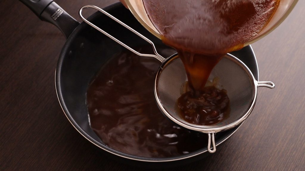 - 1.3.0.7 ⑦濾した液体を煮詰める。ある程度濃度が出てきたら味見をしてソースは完成。味が足りなければ塩をしてください。