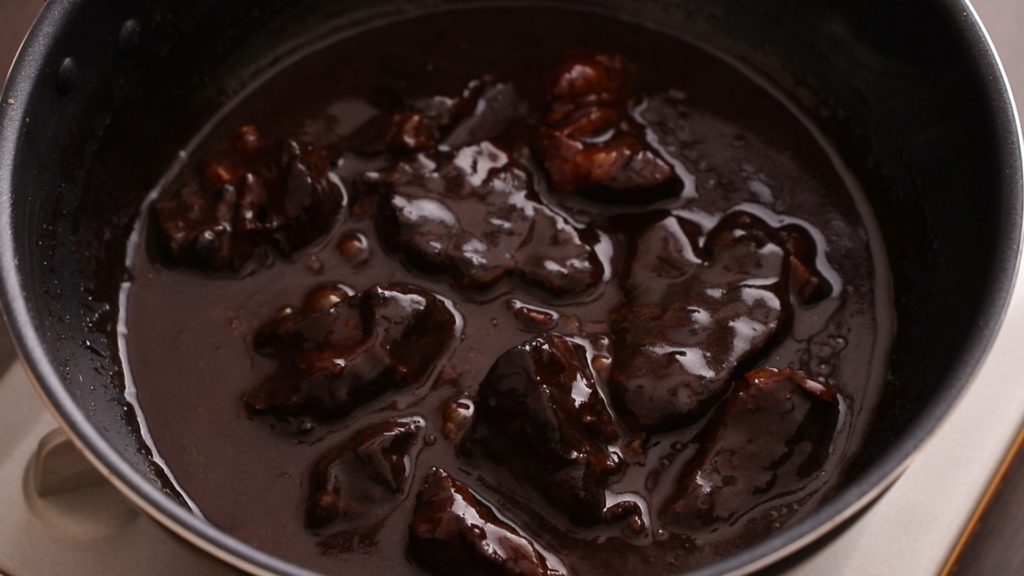 - 1.3.0.8 ⑧取り出した肉を⑦のソースに入れる。食べる時に一緒に温める。濃度が重たかったら水を足してください。