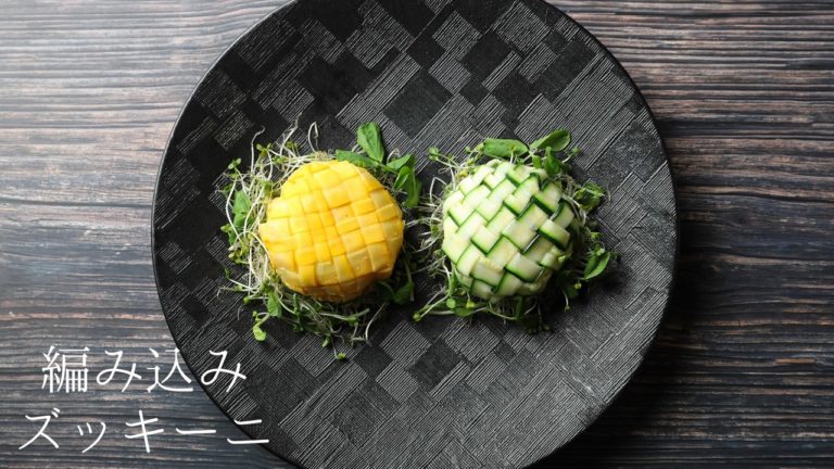 個人的には生のズッキーニは食べにくいと思うのでスライスを軽くボイルしてから編み込むか、生のスライスを編み込んで最後にボイルすることをオススメします。