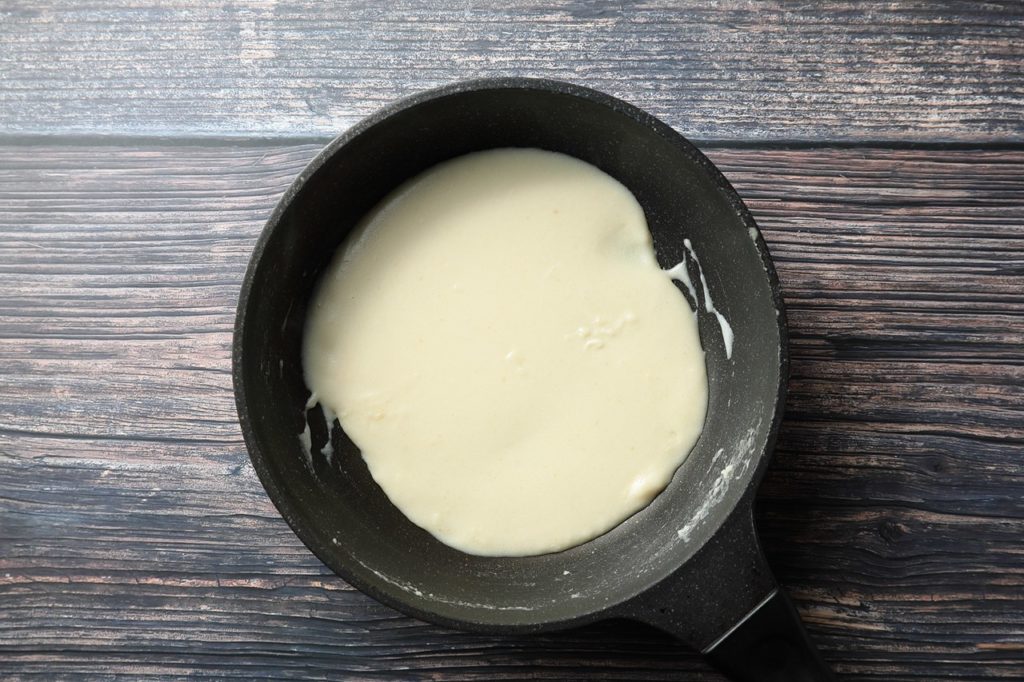①ベシャメルソースを作る。鍋にバター10gを溶かし薄力粉10gを入れ、焦がさないようにしっかり炒める。その後牛乳を3回くらいに分け少しずつ伸ばしていく。塩、白コショウで味を調えて冷やしておく。