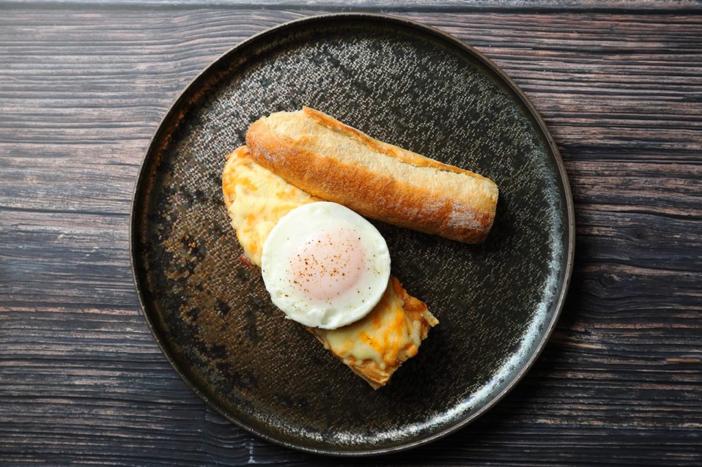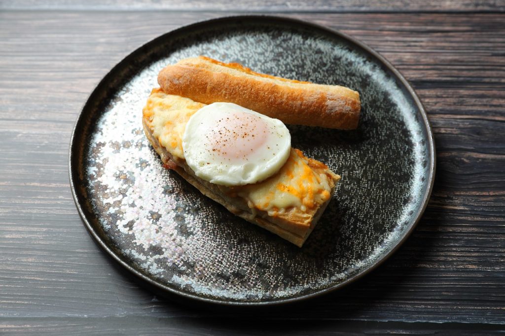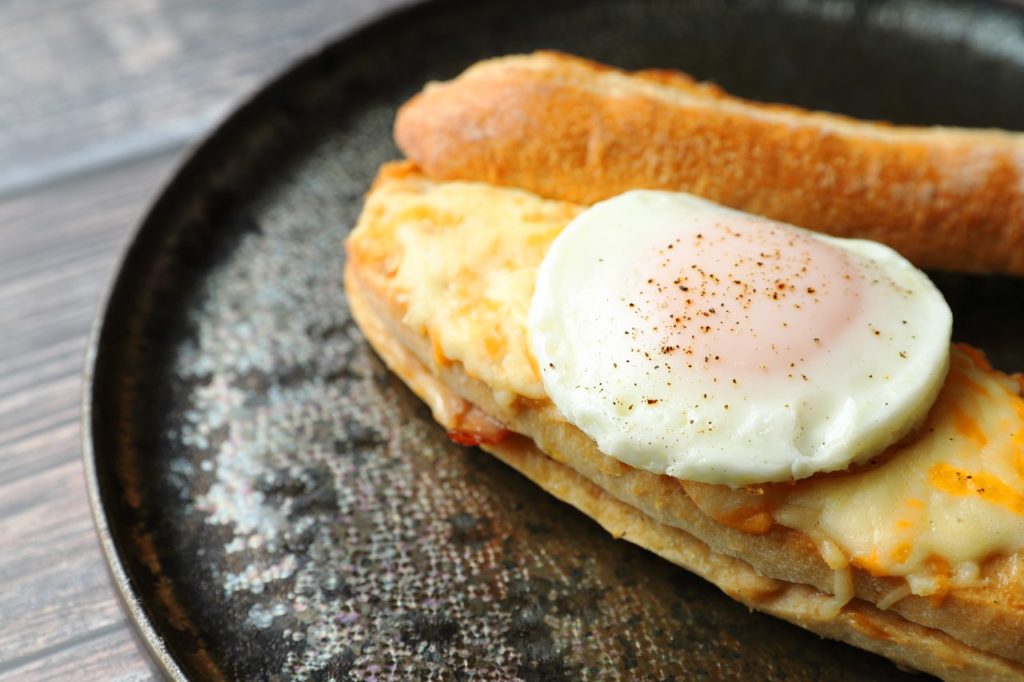 パンにハムとチーズをサンドし、その上に目玉焼きをのせたものがクロックマダム。