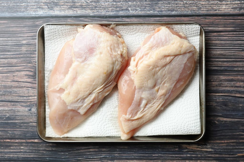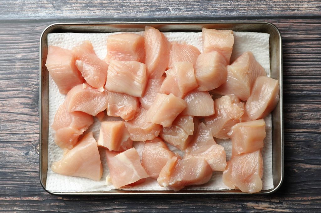 ①鶏むね肉は皮を取って適度な大きさにカットする。