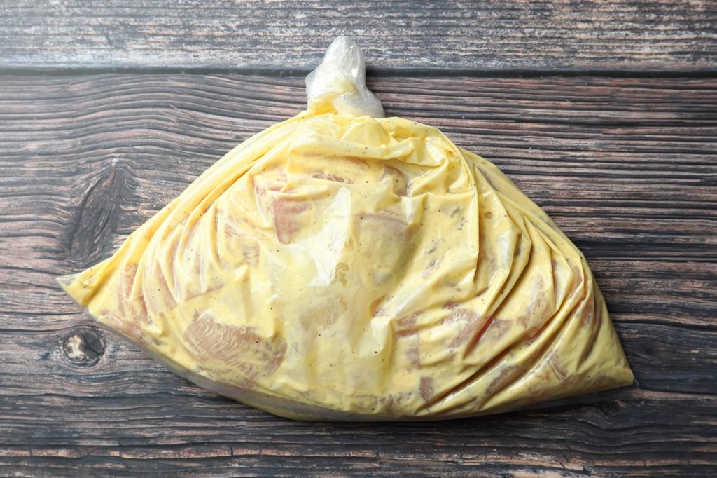 ②漬け込み調味料を全て合わせた中に切った鶏むねを混ぜ込み、保存袋などで半日程度漬けておく。