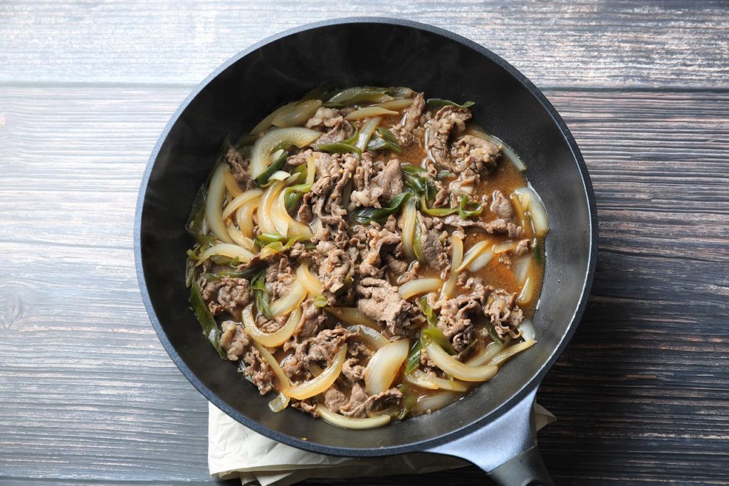 玉ねぎや牛肉の火入れ加減などはお好みで調整してください。