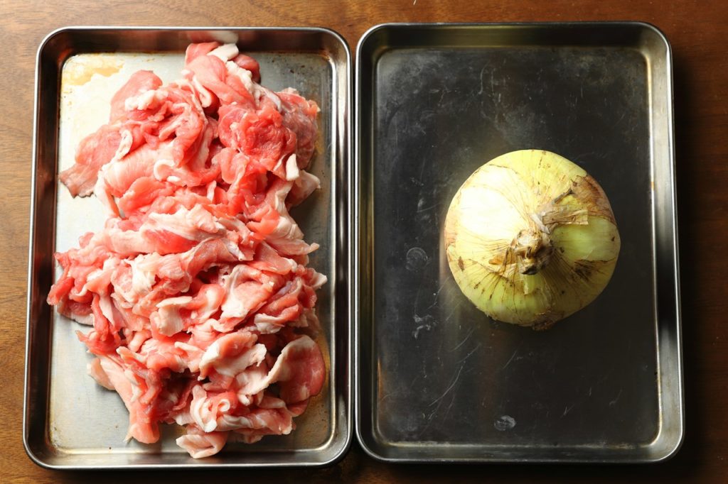 ⑤味見をし問題なければ【玉ねぎ】を入れひと煮立ちさせ【牛肉又は豚肉】を入れ、肉に火が入り味が入ったら完成。