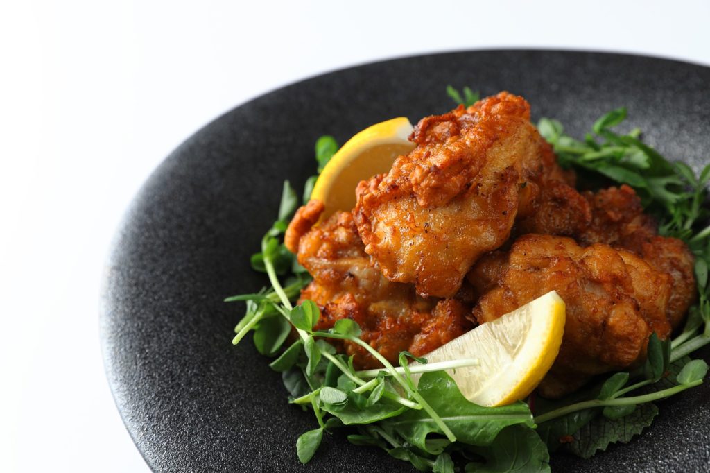③漬けたものをたっぷりの油で揚げる。2度揚げ(2度目は高温で)するとカリッと仕上がります。レモンなどを添えて完成