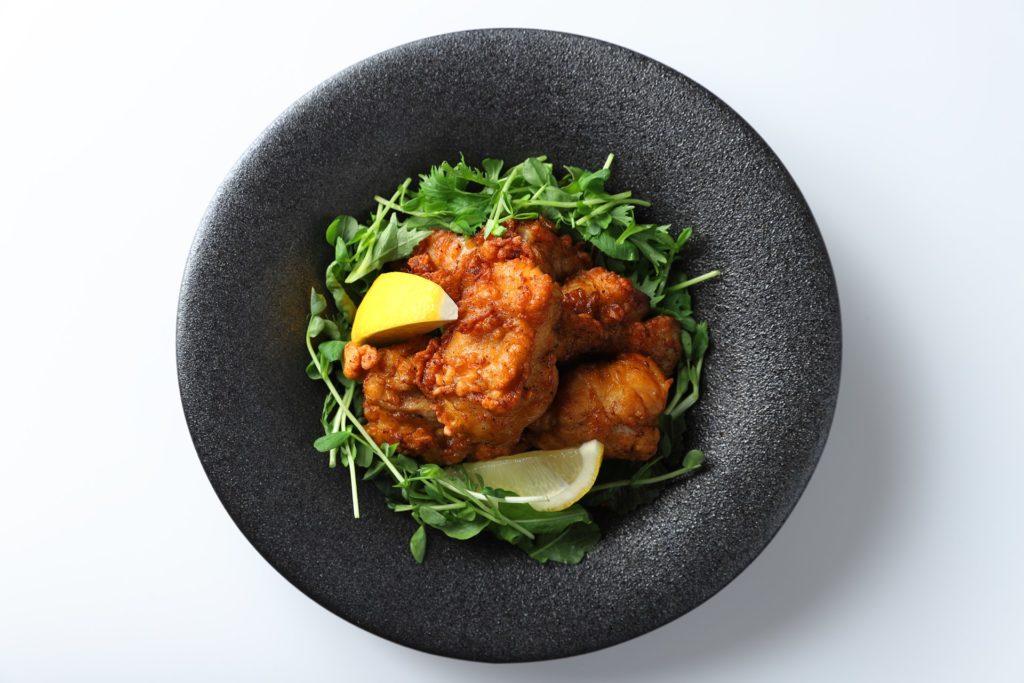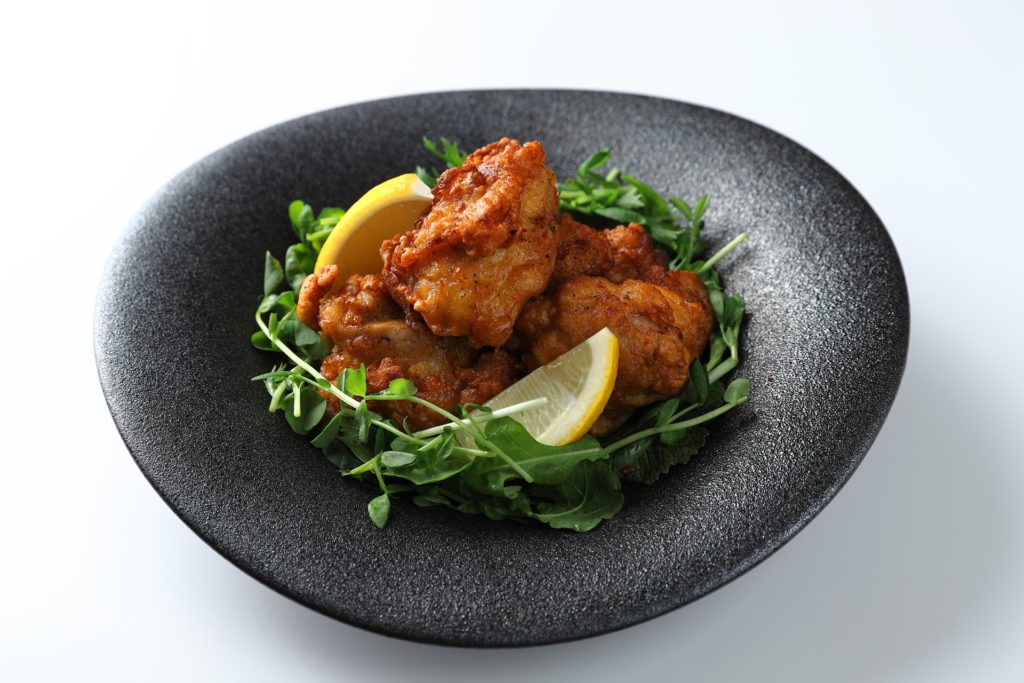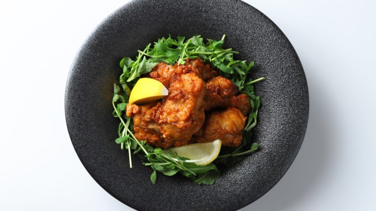 ③漬けたものをたっぷりの油で揚げる。2度揚げ(2度目は高温で)するとカリッと仕上がります。レモンなどを添えて完成