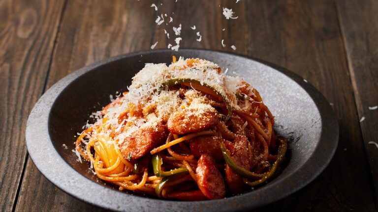 家庭のナポリタンよりも滋味深いレシピになっていますので是非お試しください。