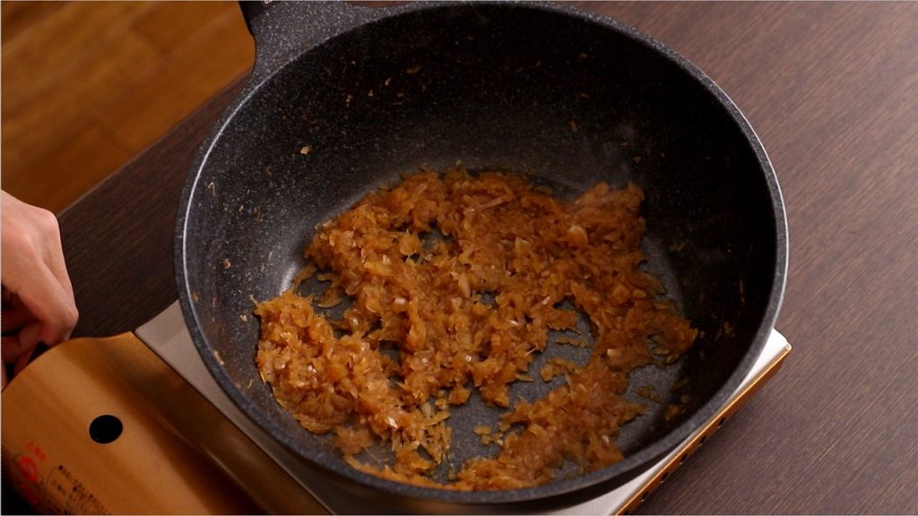 塩を入れることによって玉ねぎの水分が中からしっかりと出るのと同時にうま味が引き立ちます。