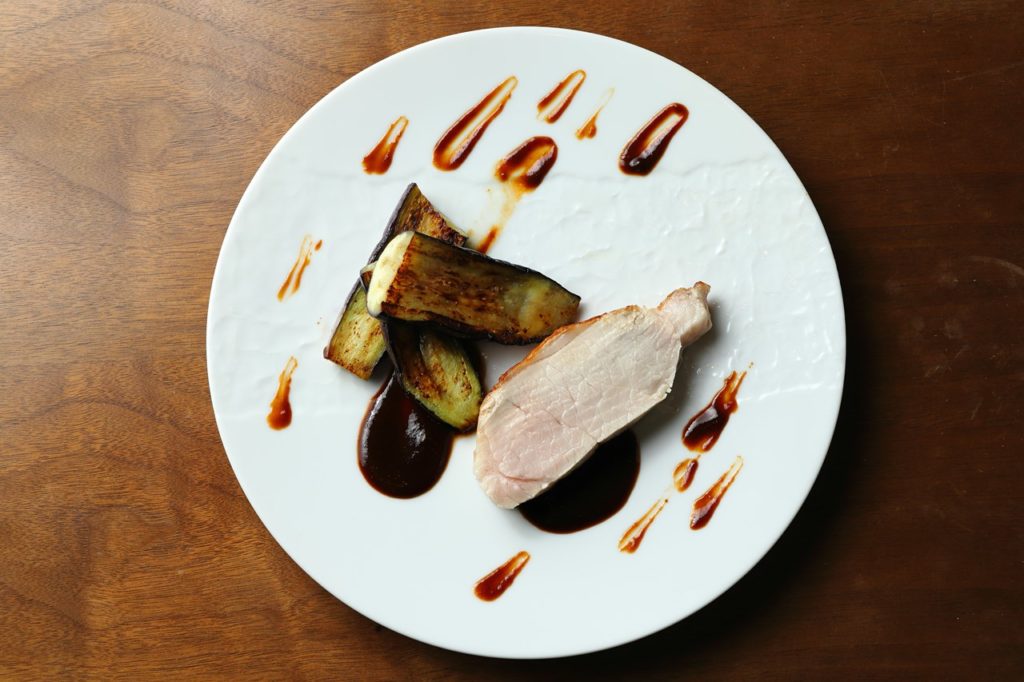 - 1.2.0.4 ④付け合わせのなすを油をひいたフライパンでしっかり焼いていく。塩コショウで味付けをする。