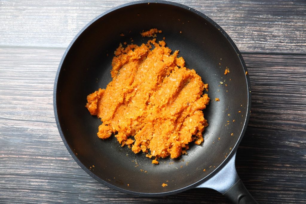 - 1.2.0.2 ②焼けた肉を取り出し、玉ねぎ、にんじん、ニンニク、(あればセロリ)を中火程度でじっくり炒めていく。最初に塩を2つまみ程度入れ炒める。