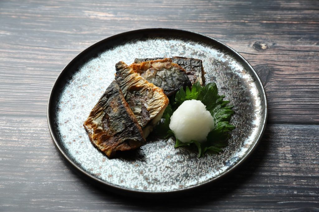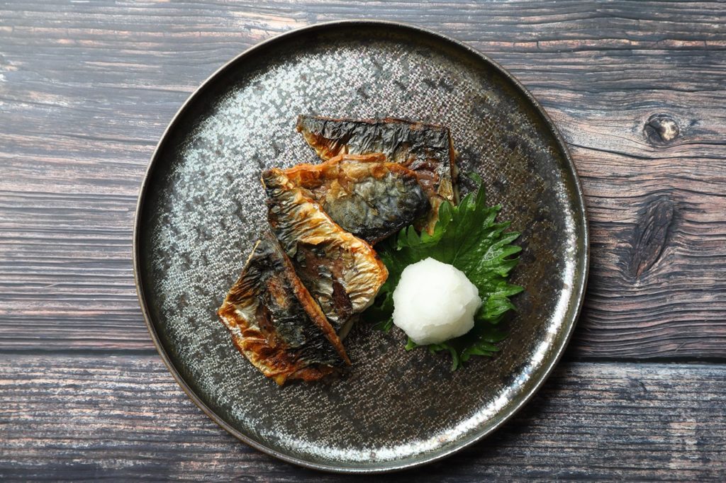 ④火が入ったら盛り付け、お好みで大根おろしなどを付けて完成。