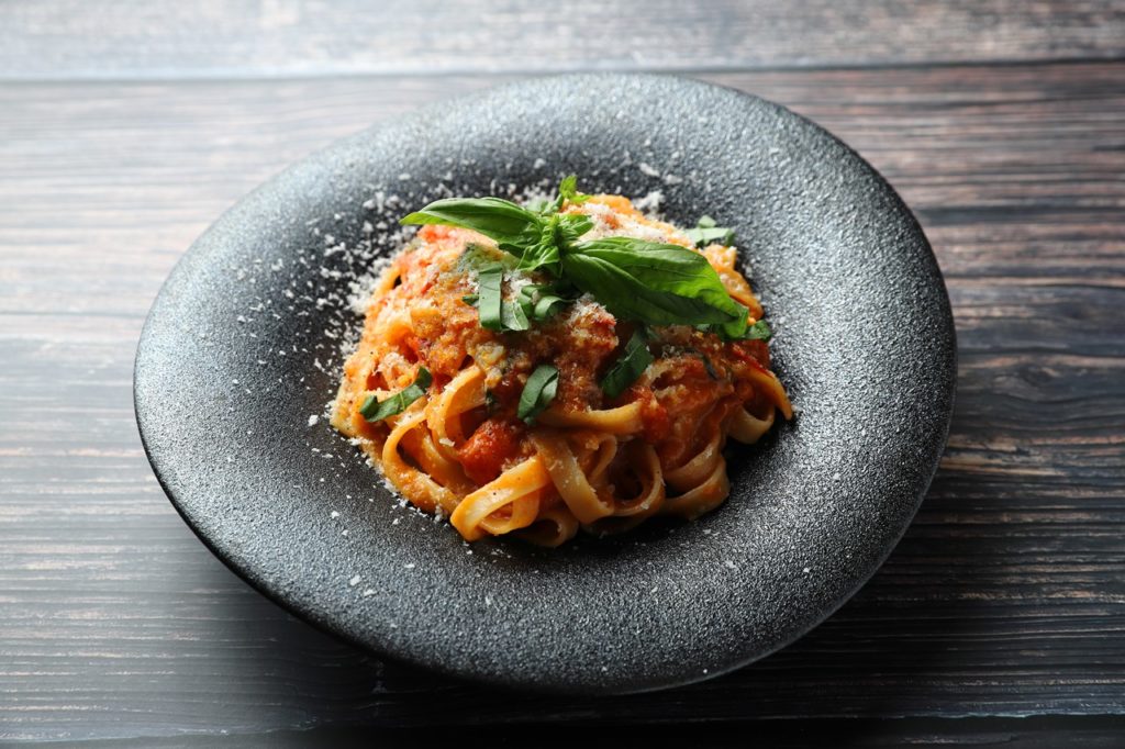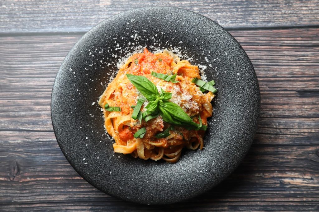 ⑥皿に盛り付けパウダーチーズ、刻んだバジルを仕上げに。