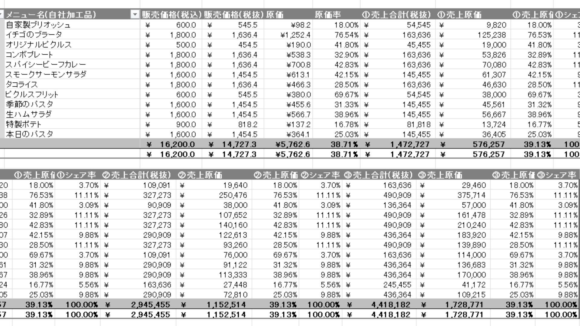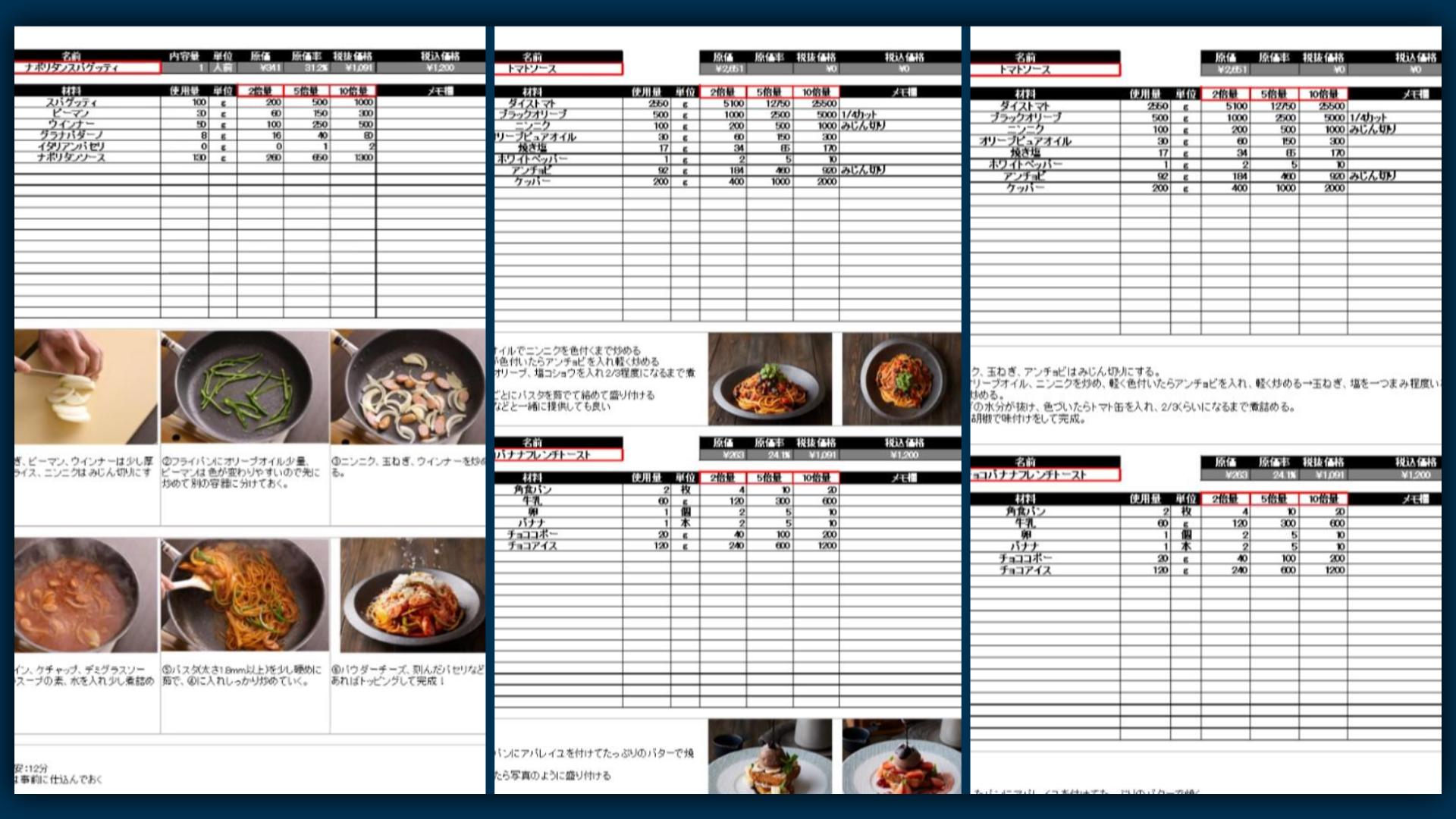 エクセル原価計算&レシピ管理表
