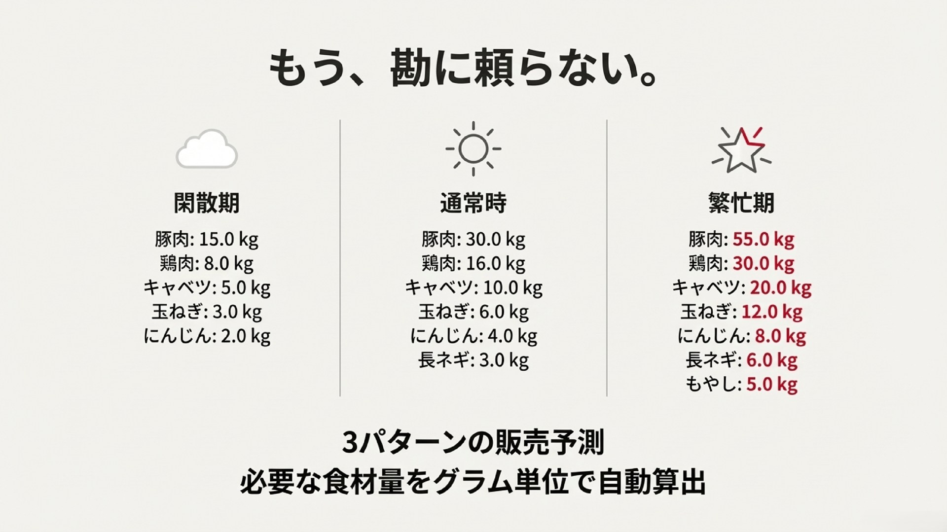 3パターンの仕入れ量の自動算出
