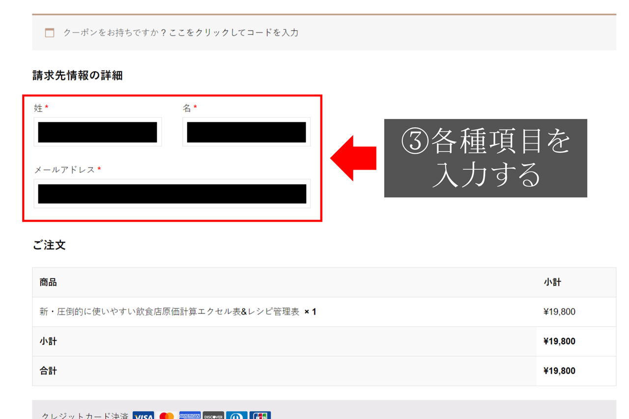 ①商品ページから欲しいアイテムをカートに追加する。 ②カートの内容を確認し、購入手続きに進むをクリック。 ③各種入力をする。 ※個人情報は厳重に管理しています。 ④支払方法を選択し、各種入力、確認をしたら注文するボタンを押す。 ※個人情報は厳重に管理しています。 ⑤購入後、入力したメールからダウンロード可能です。